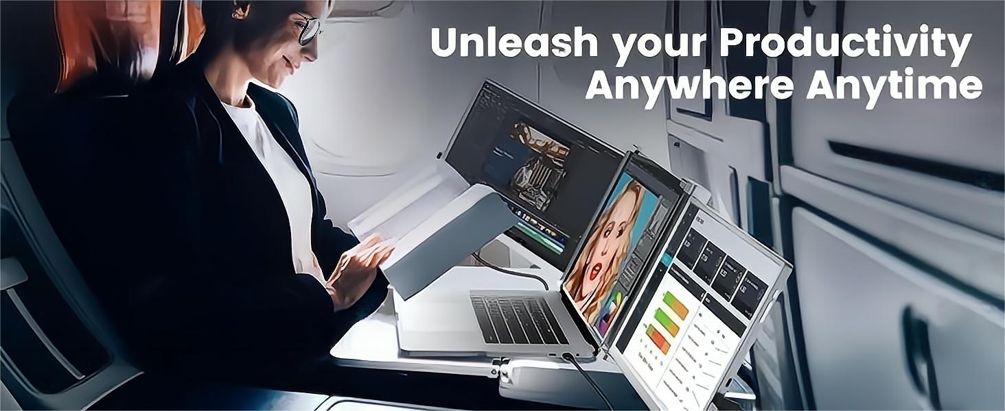 Triple Fold Design: The Trifold Monitor features a unique triple-fold design, allowing for easy portability and compact storage. You can effortlessly fold and unfold the screens to set up your extended display whenever and wherever you need it.
