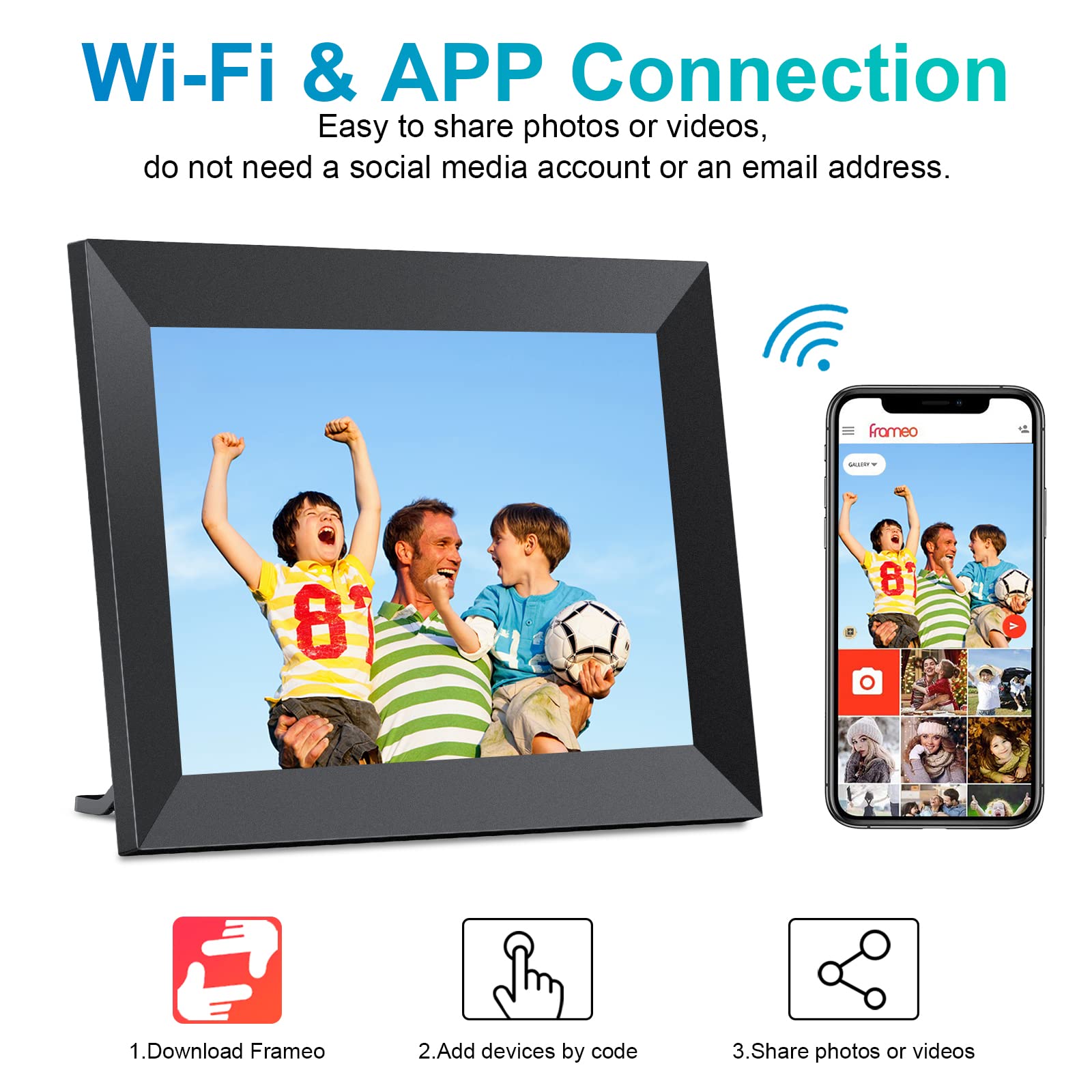 - Wi-Fi Connectivity: Allows you to send photos directly from your smartphone using the Frameo app (available for iOS and Android).