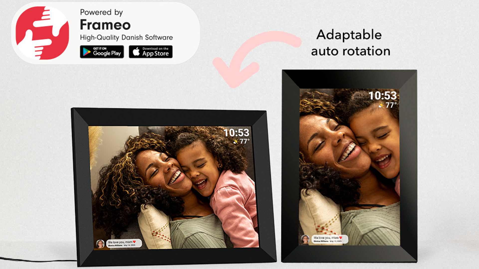 - App Compatibility: iOS and Android (Frameo app)